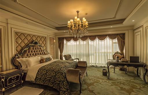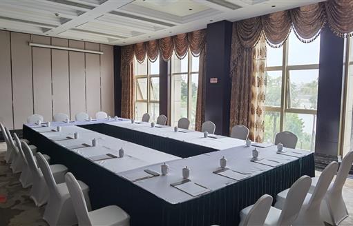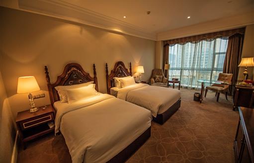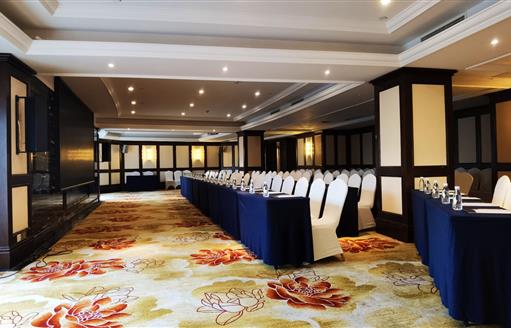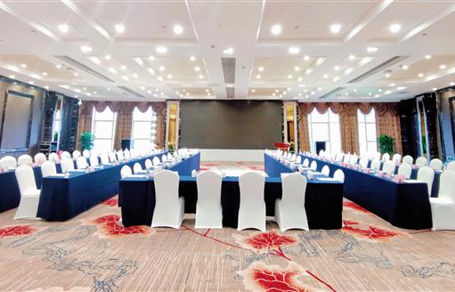 酒店位于绵阳市经开区三江交汇口下游,5.07平方公里的水面面积堪比西湖。酒店四周环水,视野开阔,风景优美,与富乐山、笔架山和南山遥相对望,距离南郊机场6公里,距离火车站8公里,交通便利。酒店占地面积57亩,总建筑面积4.2万平方米,拥有各类客房258间以及风格各异的宴会厅、多功能厅与会议室以及恒温游泳池、婚礼礼堂等配套设施。